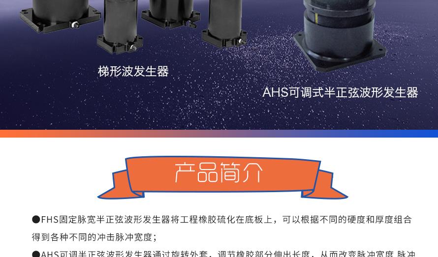 產(chǎn)品型號(hào): 品牌:劍 喬 用途:FHS固定脈寬半正弦波形發(fā)生器將工程橡膠硫化在底板上,可以根據(jù)不同的硬度和厚度組合得到各種不同的沖擊脈沖寬度。