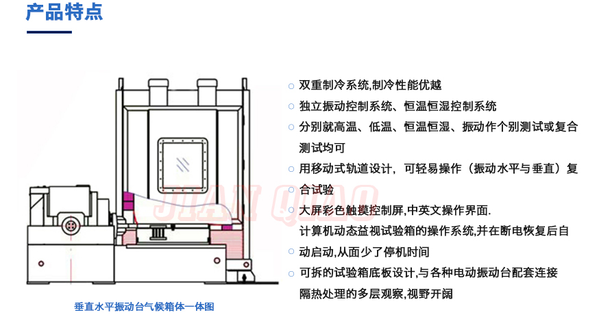 產(chǎn)品型號(hào):JQTHV-500 品牌:劍 喬 用途:垂直+水平振動(dòng)高低溫三綜合箱(JQTHV-500):主要是試驗(yàn)箱和振動(dòng)試驗(yàn)系統(tǒng)的綜合,試驗(yàn)時(shí)將溫度、濕度、振動(dòng)(高溫或低溫),(正弦振動(dòng)或隨機(jī)振動(dòng))以及電應(yīng)力按規(guī)定的周期綜合在同