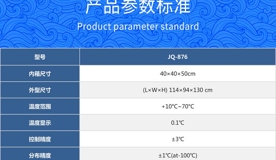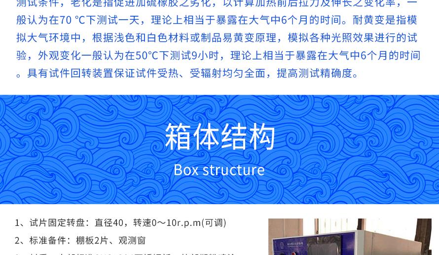 產(chǎn)品型號(hào):JQ-876 品牌:劍 喬 用途:耐黃變老化試驗(yàn)箱適用于仿真陽(yáng)光的紫外線輻射及熱度,設(shè)備滿足老化與耐黃變2種測(cè)試條件,老化是指促進(jìn)加硫橡膠之劣化